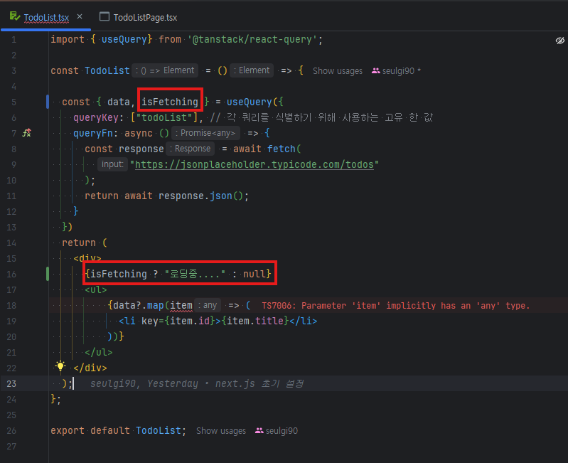 refetch() 실행 시 "Fetching 중" 으로 표시됨 -> 데이터를 새로 불러오는 중임을 알려줌