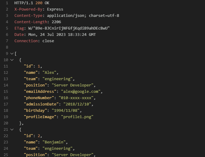 members.js 라는 파일은 member들에 대한 정보가 있는 파일이다.