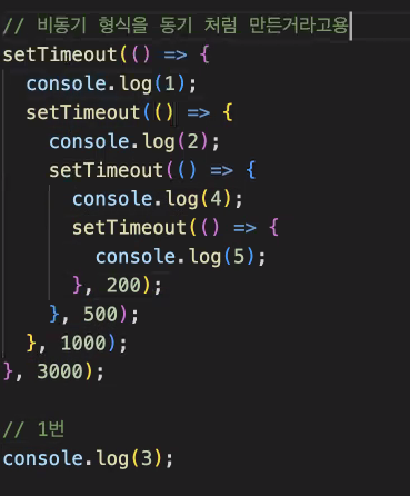 콜백함수는 결국 저렇게 비동기 형식을 동기 처럼 만든 것.
