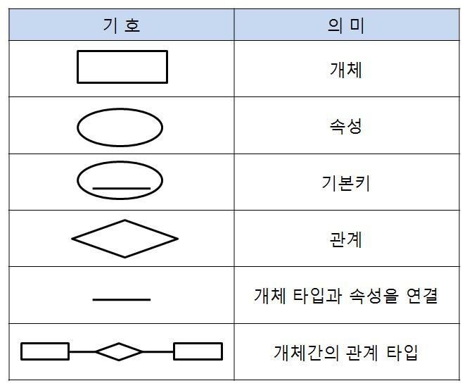 - 시스템에서 처리되는 개체의 구성과, 속성, 관계 표현하여 자료를 모델화하는데 사용