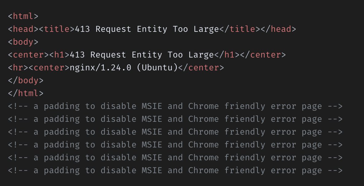 nginx 서버가 받을 수 있는 클라이언트 요청 용량을 넘어 에러 발생