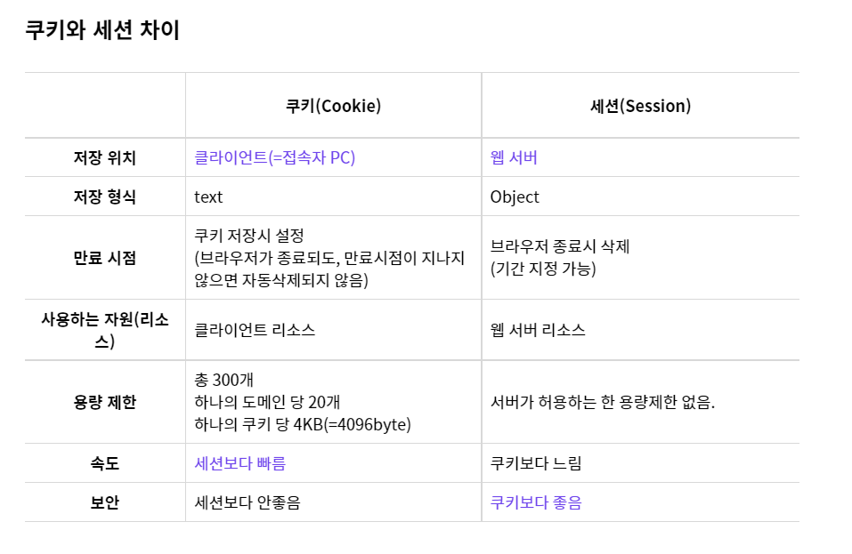 그 이유는 세션은 서버에 저장되고, 서버 자원을 사용하기에 사용자가 많을 경우 소모되는 자원이 상당하다. 이러한 자원관리 차원에서 쿠키와 세션을 적절한 요소 및 기능에 병행사용하여, 서버 자원의 낭비를 방지하며 웹사이트의 속도를 높일 수 있다고 한다.