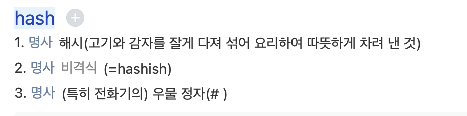 적을 알면 백전백승. hash는 한국어로 고기와 감자를 잘게 다져 섞어 요리한 것이라고 해요!